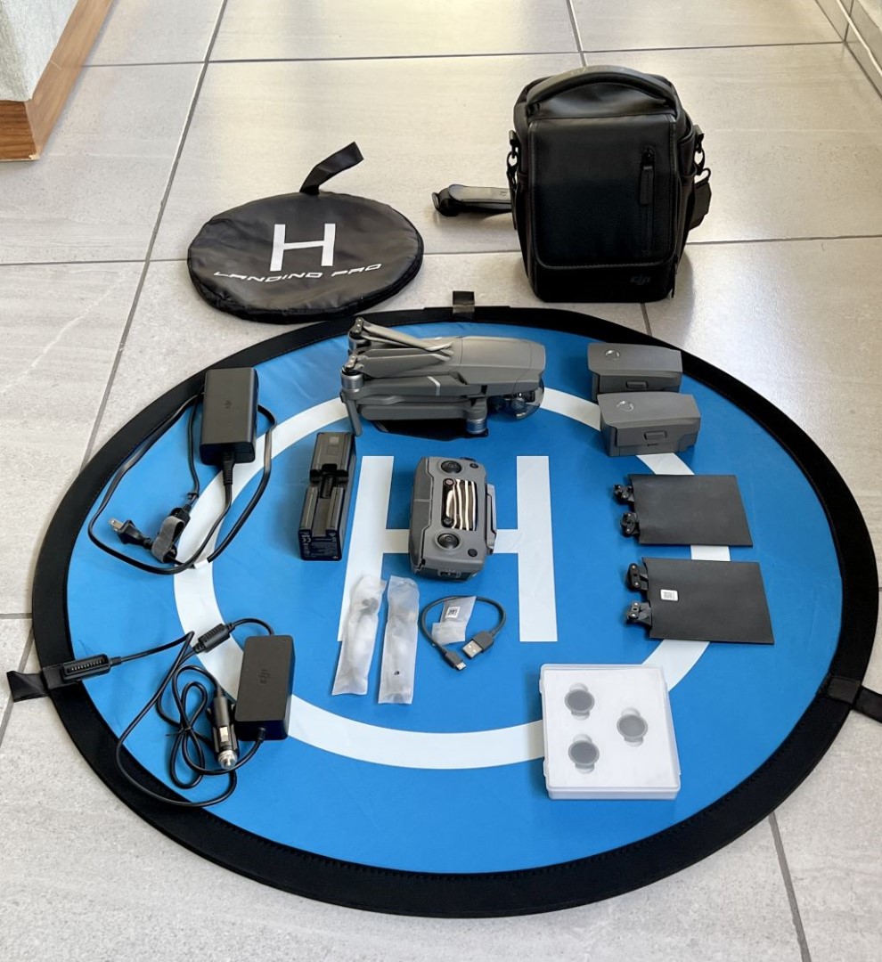 3x aku, brašna, přistávací plocha, filtry...